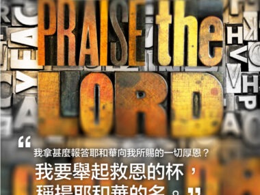 “我拿甚麼報答耶和華向我所賜的一切厚恩?我要舉起救恩的杯,稱揚耶和華的名。” 詩篇116:12-13